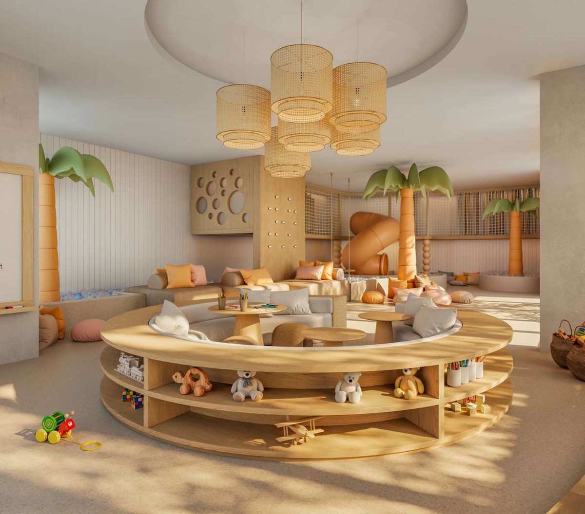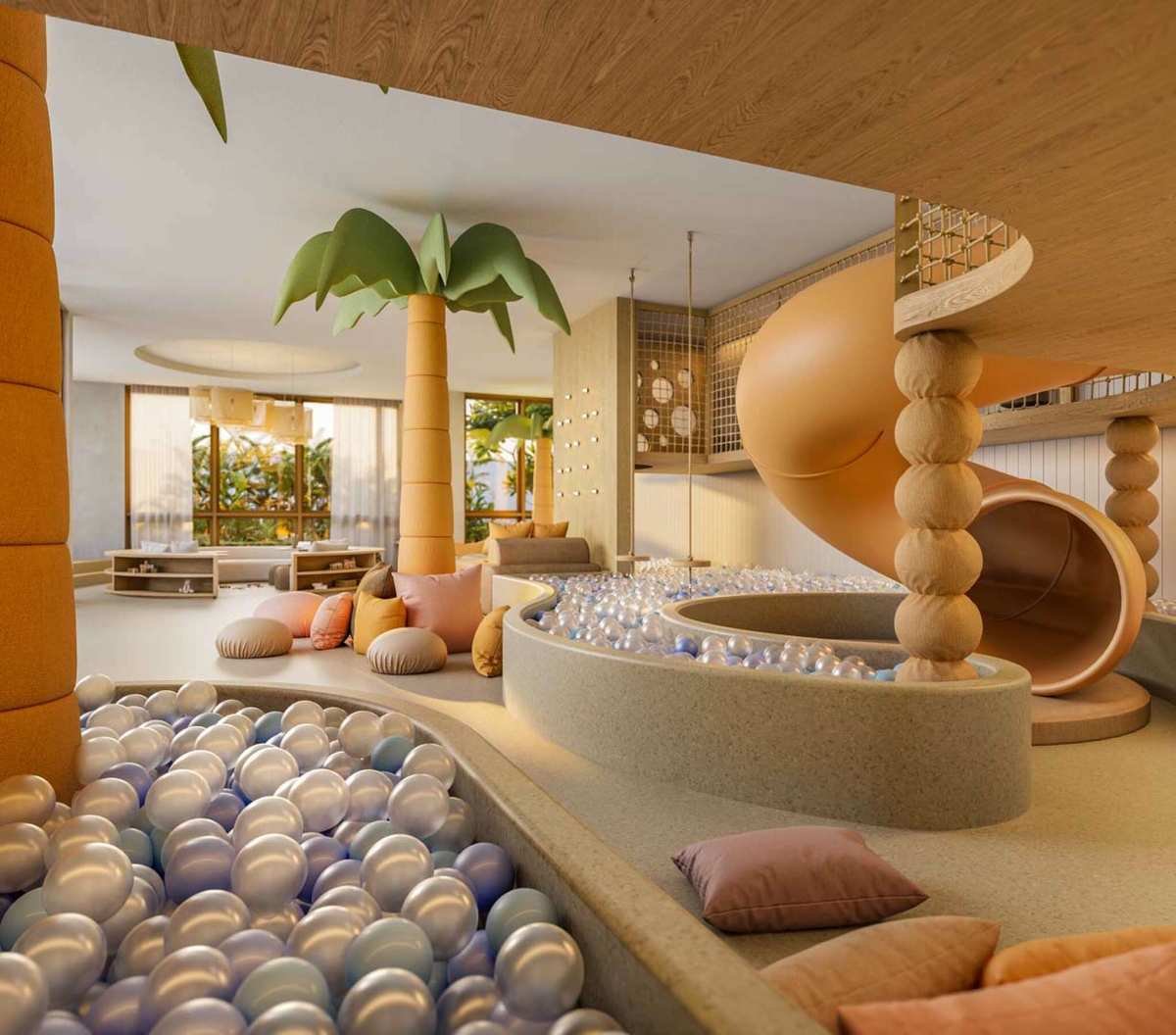 Piscina de 50 metros, além de área exclusiva com aquaplay;