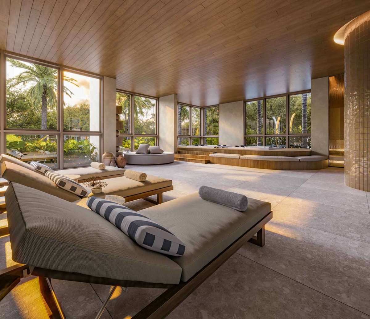 SPA com repouso, hidromassagens, sauna e sala de massagem;